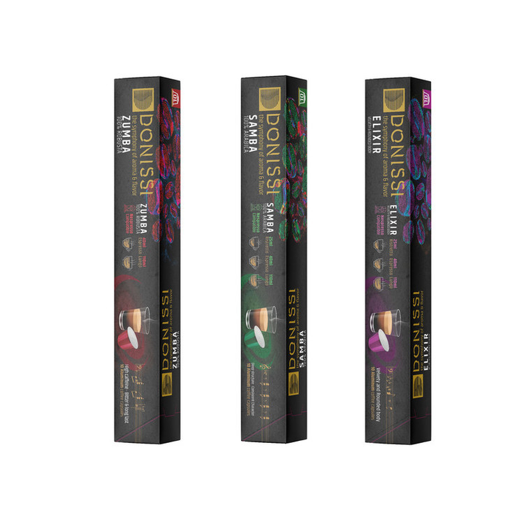 کپسول قهوه الکسیر دونیسی، تولید شده از ترکیب اكسير گونه از دانه های ساییده شده قهوه عربیکا و ربوستا انتخابی مناسب برای کسانی است که به دنبال کپسول قهوه ای با کافئین نسبتا بالا، عطر و طعم میوه های خشک و آجیلی و رایحه اعجاب انگيز قهوه هستند.
