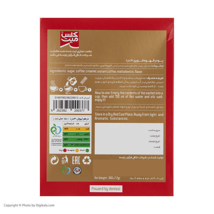 سایر توضیحات: ارزش غذایی در هر 150 میلی لیتر