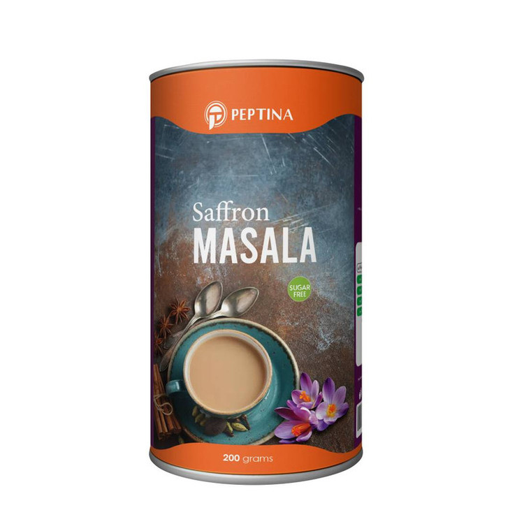 ماسالا زعفرانی نوعی نوشیدنی پرطرفدار پر ادویه و خوشمزه است که اصالت آن به هند بر میگردد. پودر چای ماسالا زعفرانی پپتینا راه حلی ایده آل برای تهیه این چای می باشد که از ترکیبی از پودر چای سیاه فوری، پودر خامهای کننده غیر لبنی، پودر سرگل زعفران، پودر دارچین، میخک، جوز هندی، فلفل سیاه، هل سبز و استویا (عامل شیرین کننده) است. در این محصول پودر استویا جایگزین شکر شده است تا محصولی رژیمی برای مصرف شما عزیزان فراهم شود و همچنین به دلیل عدم استفاده از شیر لبنی در ترکیبات آن محصولی وگان میباشد. در کنار طعم خاص و عطر بینظیر این چای بخاطر خواص بینظیرش نیز معروف است که در این میان می توان به کاهش سطح قند خون، کاهش ، کاهش نفخ، خاصیت ضد التهابی، رفع حالت تهوع و افزایش سوخت و ساز و انرژی بدن اشاره کرد.