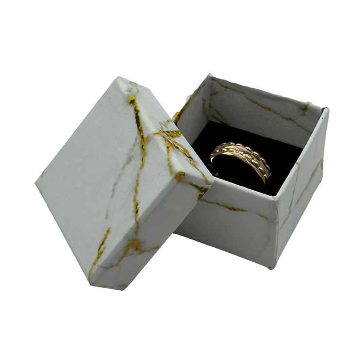 جعبه جواهرات انگشتری هاردباکس طرح سنگ مرمر رگه طلایی مناسب اصناف طلا و جواهر فروشان و زرگری میباشد. همچنین از ان جعبه زیبا میتوان برای کادو دادن انگشتر استفاده نمود. این جعبه انگشتر قابلیت فروش در تعداد 1 عددی، 12 عددی و بسته 24 عددی را دارا است. داخل جعبه از فوم با روکش پارچه ی جیر مشکی جهت محافظت از انگشتر استفاده شده است.